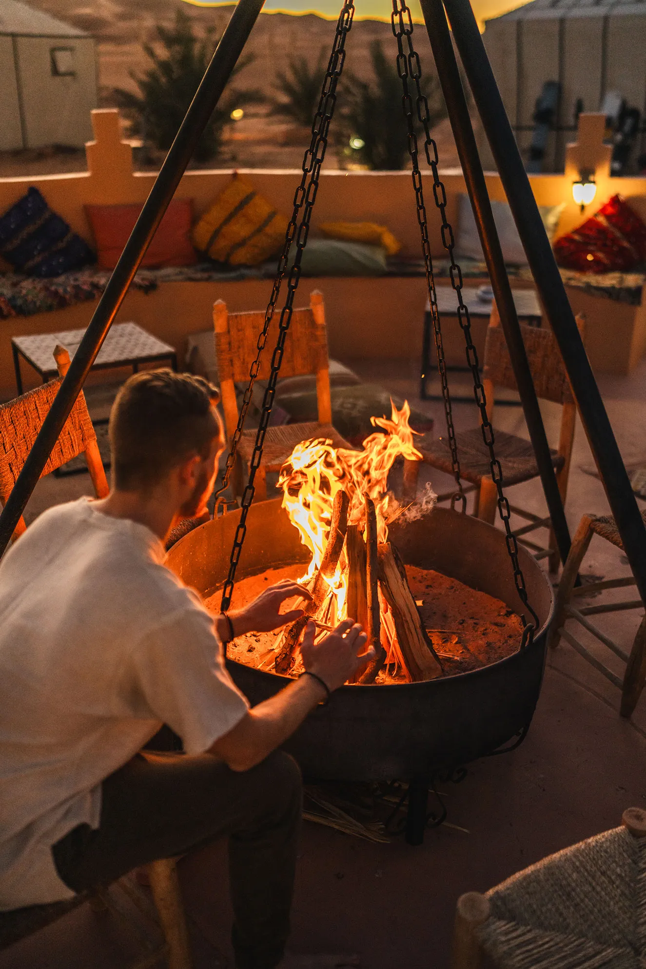 After a hearty breakfast surrounded by dunes, we set out to visit desert villages, most notably Khamlia. There, we will witness a live demonstration of Gnawa music; a group of black Berbers originally from Sudan and sub-Saharan Africa will delight us with their spiritual art. We continue our excursion through the Erg Chebbi dunes, stopping to visit local nomads for a traditional tea of hospitality. We conclude our visit at the fossil quarries and the authentic market in the village of Rissani. In the afternoon, we set off on a camel trek through the dunes to witness a stunning sunset. Dinner and overnight stay in the camp.