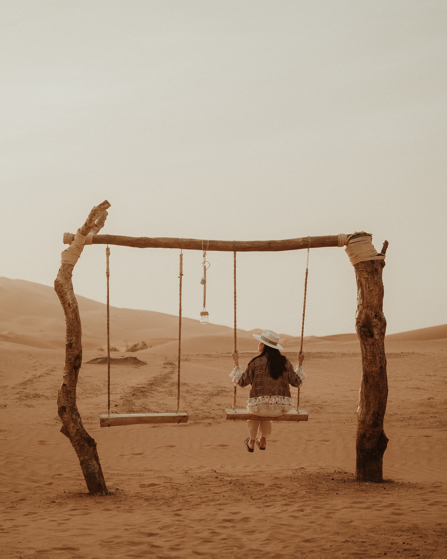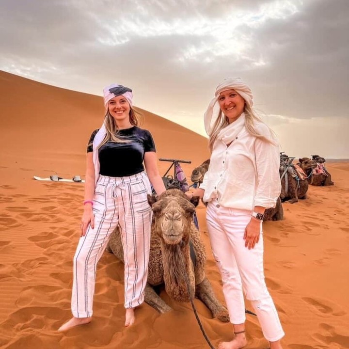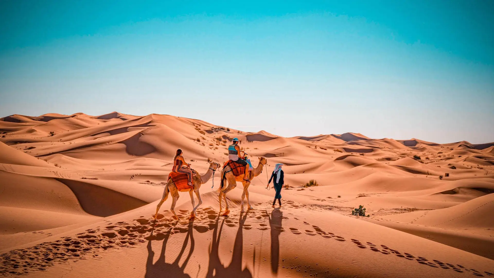 Desayunaremos y nos ducharemos antes de dirigirnos a Tinghir, un pueblo oasis, y a las Gargantas del Todra. Las Gargantas del Todra son los cañones más altos de Marruecos. Sus paisajes son realmente impresionantes. Después, nos dirigiremos al oasis de Tafilalt, que cuenta con los palmerales más grandes de Marruecos. Tras visitar los pueblos desérticos de Erfoud y Rissani, llegaremos a nuestro destino: Merzouga. Nos alojaremos en un hotel para descansar. Finalmente, montaremos en camello hacia las dunas de Erg Chebbi. Subiremos a las altas dunas para contemplar una puesta de sol espectacular antes de ir al campamento en el desierto. Allí, disfrutaremos de diversas actividades, como bailar al ritmo de música tradicional en vivo y observar las estrellas. Los nómadas nos entretendrán hasta que decidamos ir a dormir.